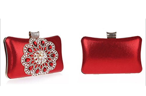 AnKoee Donna Pochette Borsa Sacchetto Borsetta Da Sera Borsa Diamante Portafoglio Frizioni (Rosso)