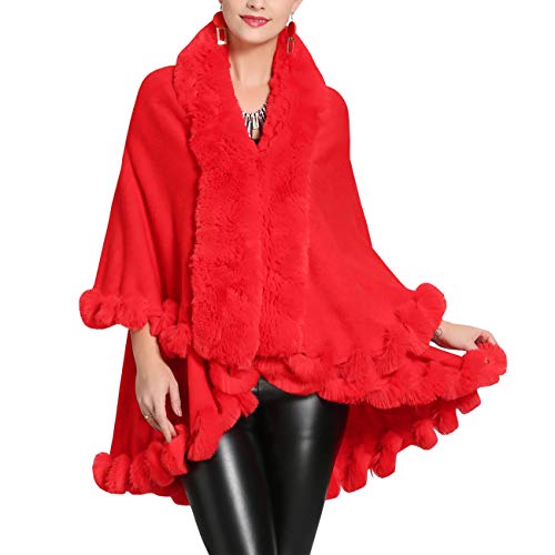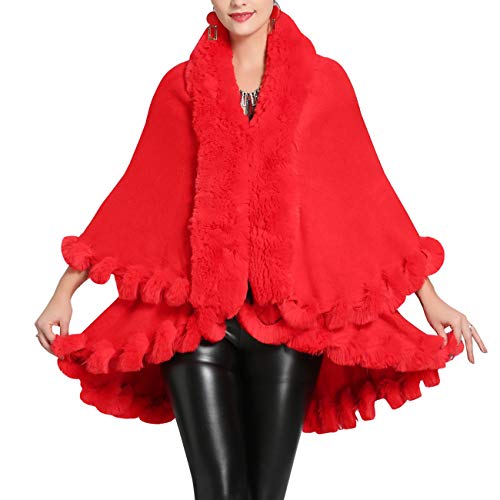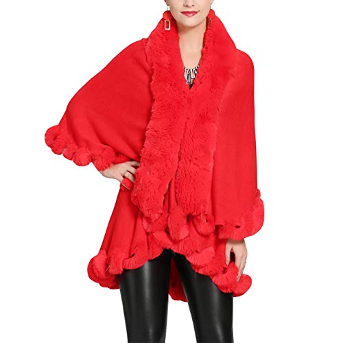 AnKoee Stola Scialle Donna Pelliccia Coprispalle Sciarpa Elegante per Matrimonio Invernale Cerimonia Sposa Damigella (Rosso)