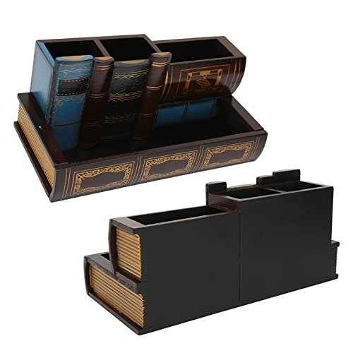[Parametri del prodotto] Circa 240x115x115mm/9,45x4,53x4,53 pollici. Questo portapenne in legno è progettato per assomigliare a un set di libri da biblioteca decorati ed è adatto per la camera da letto e l'ufficio