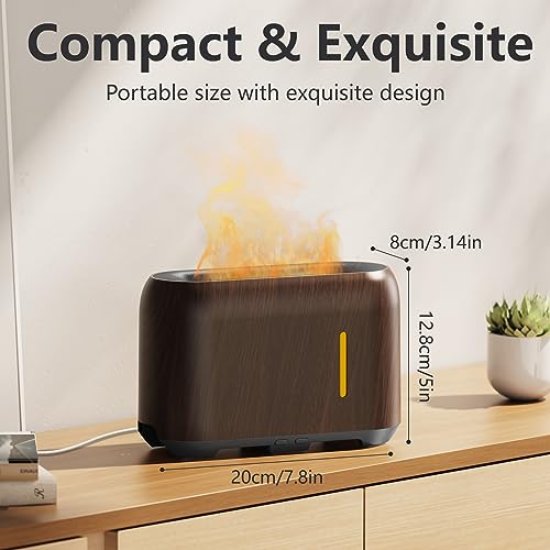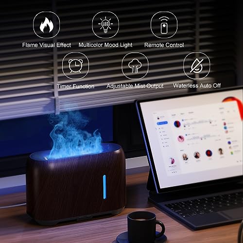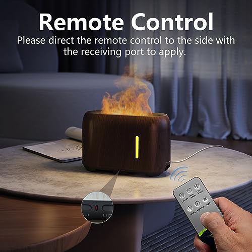 Ankrs Diffusore di Oli Essenziali con Effetto Fiamma, Aggiornata Fiamma a 7 Colori, Aroma Diffusore con Telecomando, 3 Timer, LED Luce Regolabile, Spegnimento Automatico (Venatura del Legno Scuro)