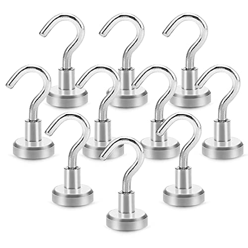 Anksixx Gancio Magnetico, 10PCS Potente Neodimio Magnete Gancio, 16mm Ganci Magnetici Ultra Forte, Magnete con Gancio per Cucina Camera da letto Bagno Armadietti Calamita da frigo (D'argento)