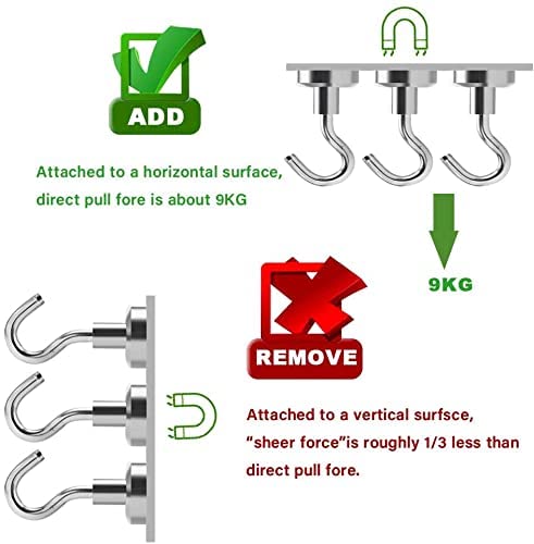 ✿【Magnetico Super Forte】Questo gancio magnetico ha un diametro di 16 mm, questo gancio magnetico ha un magnete molto forte, non occupa troppo spazio, per una presa forte. Questi ganci magnetici extra resistenti al neodimio possono trasportare un peso massimo fino a 19,8 libbre (9 kg) se appesi orizzontalmente.