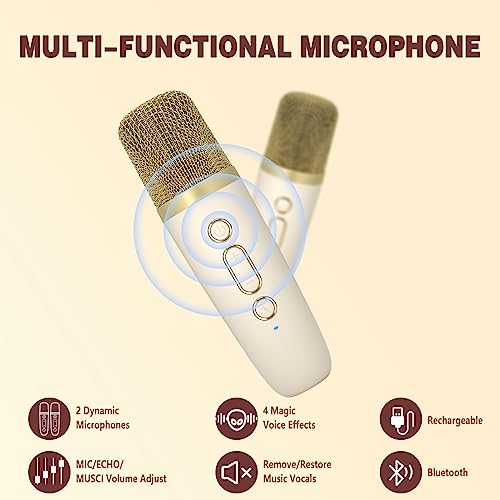 Ankuka Karaoke Bluetooth Karaoke Bambini con 2 Microfoni Cassa Bluetooth Portatile con Luci LED Regalo per Bambini Giocattolo Cambia Voce Beige