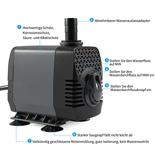 AMPIA APPLICAZIONE - Circola e aerare l'acqua, rendendola più attraente per i tuoi pesci o tartarughe.Questa pompa sommergibile è perfetta per acquari, fontane, erogatori e sistemi idroponici, ecc.