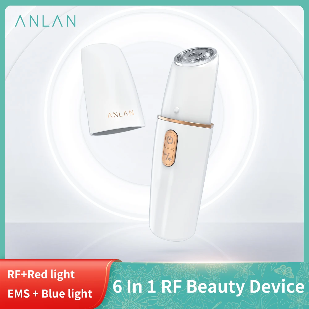 ANLAN 6 In 1 RF Beauty Device EMS Face Lifting Facial Mesotherapy Radio Frequency Red and Blue Colors Skin Care Face Firming
