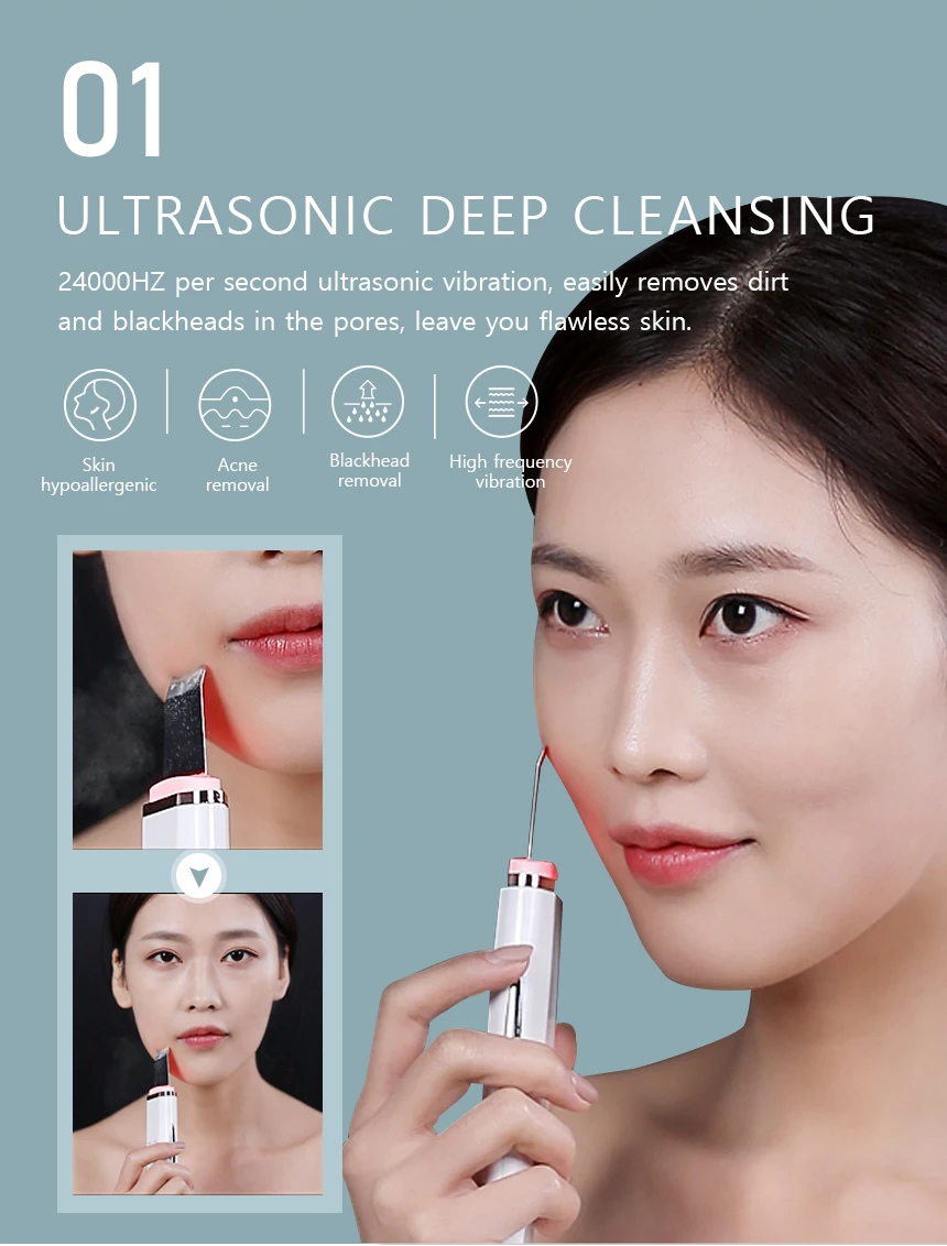 ANLAN Ultrasonic Skin Scrubber Red Blue Light Care Ion Blackhead Acne Remover Peel Face Deep Cleansing Lifting Massager Beauty