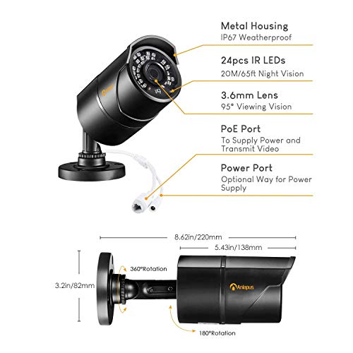 Anlapus 5mp Telecamera PoE Aggiuntiva o Sostitutiva solo Sistema PoE, Cavo Ethernet non Incluso