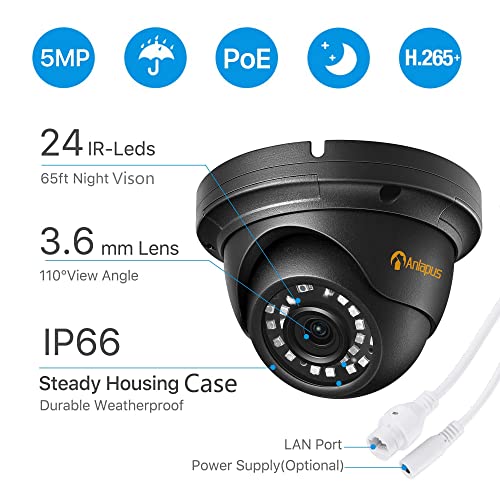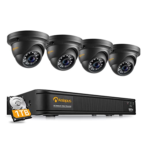 Anlapus 5MP Kit Videosorveglianza PoE 8CH H.265+ Videoregistratore NVR + (4) Telecamera Esterno, IR Visione Notturna, Allarme di Movimento, 1TB HDD