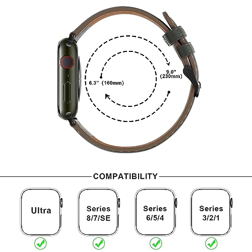 Anlinser Compatibile con Cinturino Apple Watch 45mm 44mm 42mm 41mm 40mm 38mm, Cinturini di Ricambio in Vera Pelle Compatibile con iWatch Serie 8 7 6 5 4 3 2 1, SE (45mm/44mm/42mm, Verde Scuro)