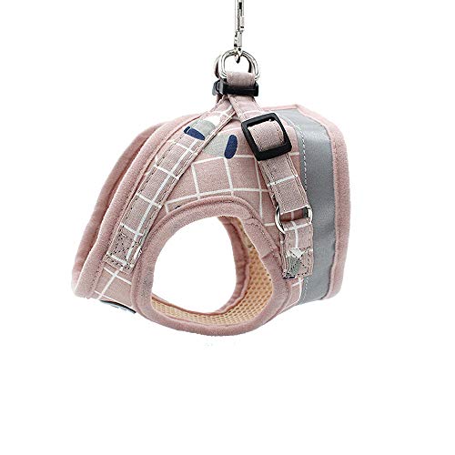 Anlitent Set di pettorina regolabile per cani e gatti e guinzagli per camminare, a prova di fuga per cuccioli di piccoli animali/gatti, collare per cani facile da montare (medio, rosa griglia)