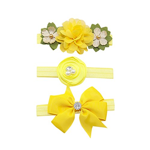 Anmain Bambino Fasce Per Capelli Fascia Capelli Perla Elastici Cerchietto Capelli Fiore Cerchietti Fascia Capelli Neonata Bello Turbante Bandane Fascia Headband Hair Band Tre Pezzi Accessori (D)