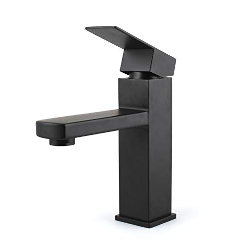 Anmas Power - Miscelatore monocomando per lavabo in ottone massiccio cromato per lavabo e bagno, rubinetto corto in ottone massiccio nero opaco (nero)