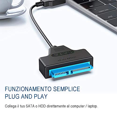 Anmete Adattatore USB 3.0 a SATA Convertitore e Esterno USB 3.0 a SATA per 2.5 Pollici HDD SSD Supporto UASP SATA III Cavo USB a SATA Adapter Hard Drive Disk Supporta Windows XP Vista 7 8 10 Mac OS