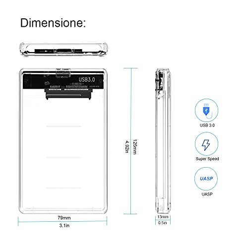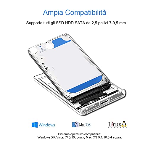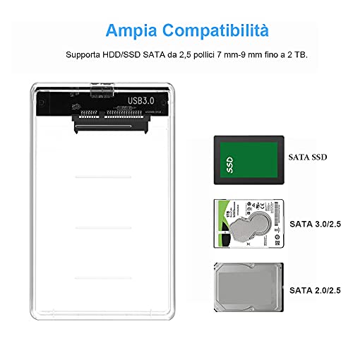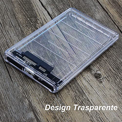 Anmete Case per Disco Rigido 2.5 USB 3.0 Caso Esterno per Hard Disk HDD SATA SSD Enclosure per HDD SSD 2.5 7mm e 9.5mm SATA I II III Tool Free Case USB3.0 Disco Rigido SATA HDD SSD Trasparente