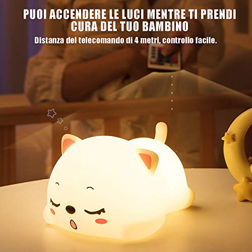 Anmete Luce Notturna Bambini USB Ricaricabile LED Luce Cameretta bambini in Silicone Luce Notturna con Telecomando Lampada Comodino 7 Cambia Colore Regalo Natale Stanza Portatile Baby Night Light