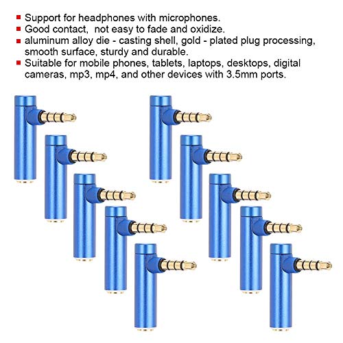 Annadue Jack Audio per Cuffie da 3,5 mm, Jack Audio da Maschio a Femmina, Adattatore per Gomito a 90 Gradi, per telefoni cellulari Tablet Laptop Desktop Fotocamere digitali MP3 MP4(Blue)