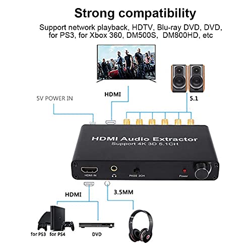 Annadue Estrattore Audio 3D HDMI, convertitore Audio a 5.1 canali, Sistema RTOS ad Alte Prestazioni Integrato e Chip di decodifica Audio, con Adattatore, Metallo(EU)