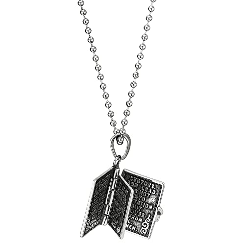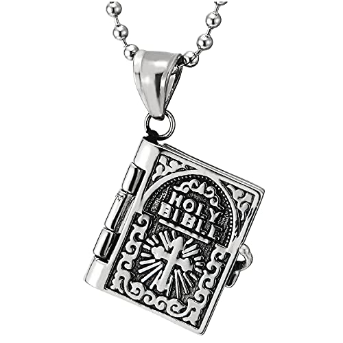Annata Apribile Sacra Bibbia Libro Ciondolo Croce Sunburst Raggi del Sole Tatuaggio Grafico, Collana Pendente, Acciaio