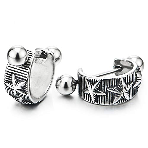 Annata Scanalato Strisce Stella Pentagramma Metà Cerchio Orecchini a Cerchio, Orecchini da Uomo Donna, Acciaio