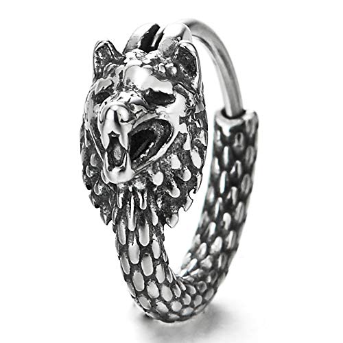 2 Annata Serpente Scaglia Modello Cerchio Orecchini a Cerchio con Testa di Lupo, Orecchini da Uomo, Acciaio Inossidabile