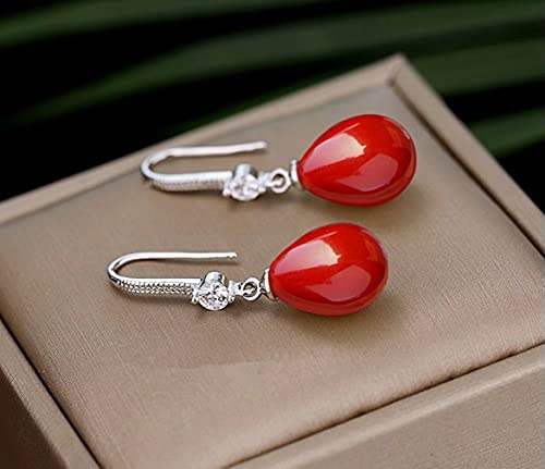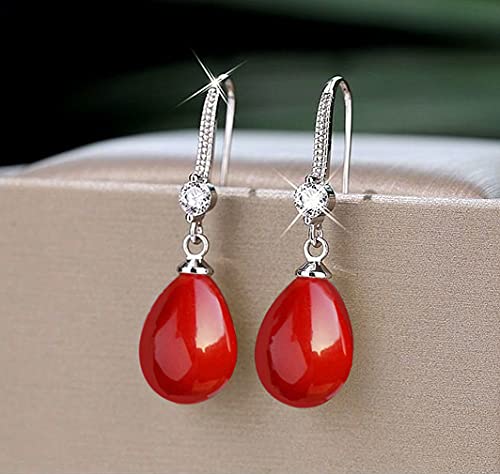 ANNAVA Orecchini da donna in argento 925 con perle rosso a goccia d'acqua, Orecchini pendenti di perle con zirconia cubica di cristallo austriaci, gioielli di perle da donna (JEE-001)