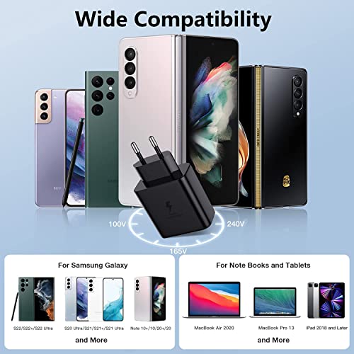 【Ampia compatibilità】 Il caricabatterie rapido USB C da 45W è compatibile con Galaxy S22+, S22 Ultra, S20 Ultra, Note 10, Note 10 Plus, Galaxy Tab S7, S7+, S8, S8+, S8 Ultra. Supporta la ricarica rapida da 25W compatibile con Galaxy S21 Ultra, S21 Plus, S21, Note 20 Ultra, Note 20, Note 20 Plus, S20 Plus, S20, Note 10 Lite. La ricarica normale è compatibile con iPhone, Xiaomi Redmi, OPPO, Realme, ecc (è richiesto il cavo dati originale).