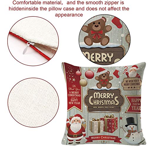 Annhao Natale Federe, 4 Pezzi Federe per Cuscini in Morbido Lino Decorazioni Natalizie Divano, Auto, Letto, Decorazioni per Divano 45x45cm, con Cerniera Invisibile.Modello A502
