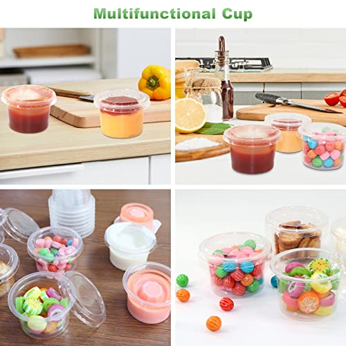Annhao 60 Pezzi Contenitori plastica con coperchio 100 ML, 4oz Contenitori ermetici per alimenti, Tazze per Salsa, Condimenti, Snack, Slime(Trasparente)