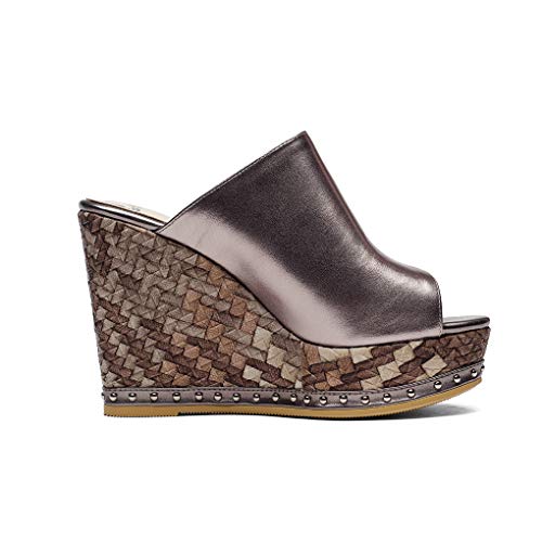 ANNIESHOE Sandali Donna Comodi Bassi Tacco Alto Wedge Zeppa Plateau Estivi Argento 35CN 35EU 22.5cm