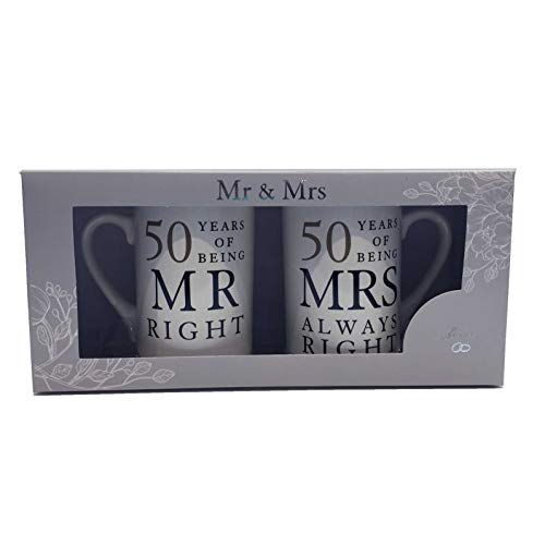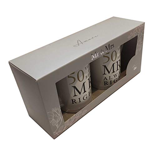 50th Anniversary Gift Set of 2 China Mugs 'Mr Right & Mrs Always Right' by Shop Inc