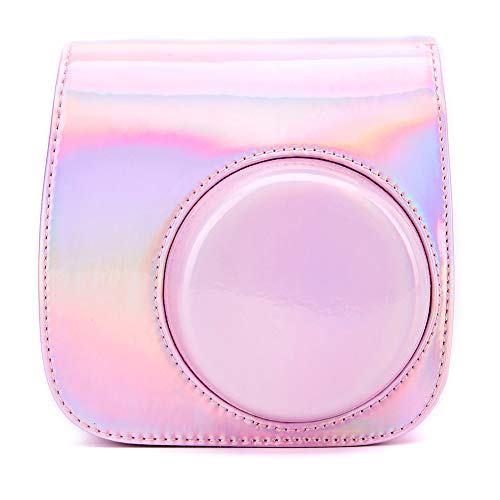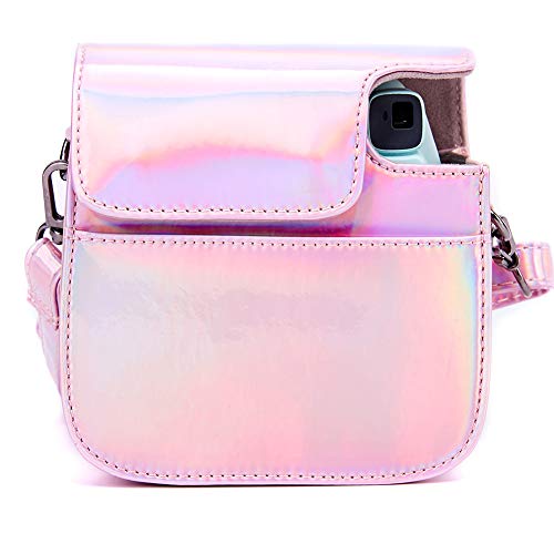 Annle Custodia per fotocamera compatibile con Instax Mini 9, Mini 8/8+, custodia per fotocamera, custodia protettiva in pelle PU liscia con tracolla e tasca incorporata (Bright Pink)