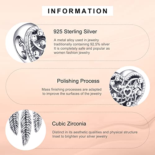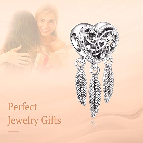 Annmors Charms Three Feathers Dream Catcher Bead Charm Donna Argento Ciondolo a Forma di, in Argento Sterling 925, Compatibile con Braccialetti e Collane Europei