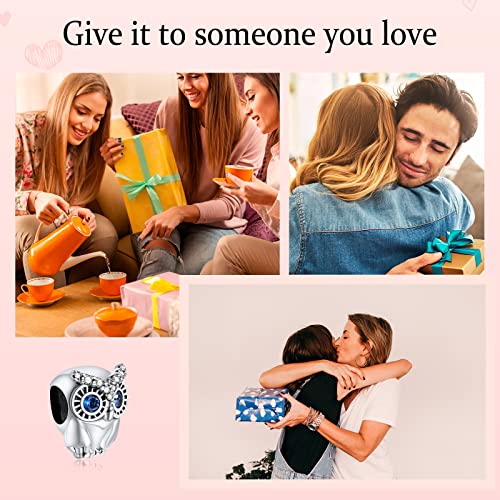 Annmors Donna Ciondolo Gufo Scintillante Argento 925 Colgantes con Zirconia cubica per Charm Bracciale