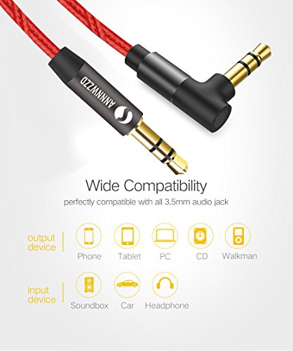 【Angolo retto per la massima libertà di movimento】Cavo aux da 3,5mm a 3,5mm 90 gradi di ANNNWZZD è ideale per l'uso in spazi stretti. Il design ad angolo retto impedisce efficacemente il cavo mini jack a 90 gradi di piegarsi, semplifica l'inserimento e contribuisce a prolungare la durata del cavo stereo aux.