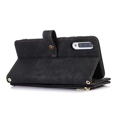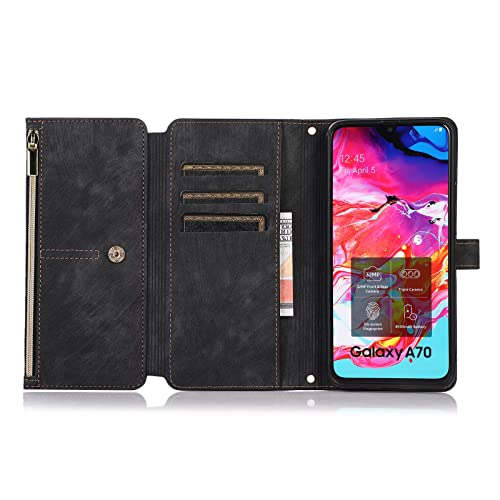 Annuo Cover Cellulare Portafoglio Libro Samsung A70/A70S Flip Modello Vintage Chiusura Magnetica Samsung A70/A70S Custodia Antiurto Custodia Samsung Galaxy A70/A70S Cover Anti-furto Cerniera Nero