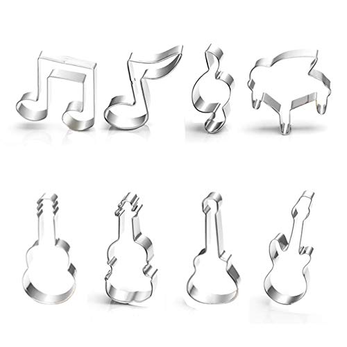 Anokay 8 pezzi strumenti musicali note - Set di formine per biscotti in acciaio inox per bambini - formine per biscotti per decorazione torte, biscotti, cucina, accessorio per Natale, Halloween, compleanno dei bambini