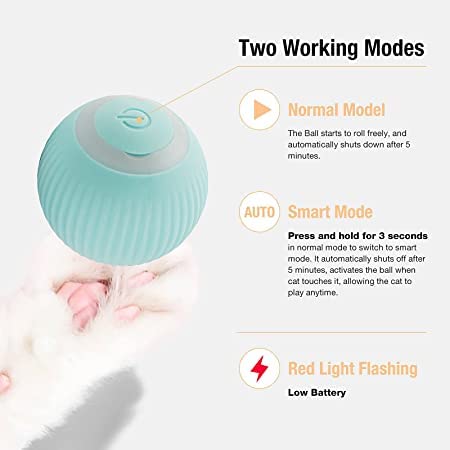 Nuova palla automatica che rotola a 360 gradi: evita in modo intelligente gli ostacoli, rotola automaticamente a 360 gradi, ha una luce LED morbida integrata che non danneggia gli occhi dell'animale. La palla per gatti gira in modo uniforme e regolare, rimane in vista per molto tempo, stimola l'istinto di caccia ed è divertente da giocare.
