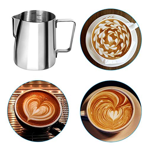 Anpro, bricchetto per il latte, 350 mlBricco per il latte in acciaio inossidabile, schiumatura del latte per cappuccino e caffellatte, colore argento (9 x 7,5 cm)., Acciaio INOX, argento, 600ml