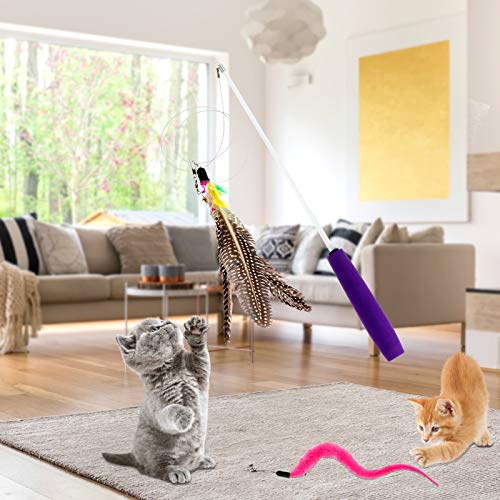 Anpro, giocattolo interattivo per gatti, con 2 piume di ricambio