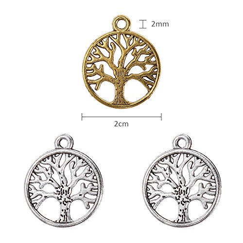 100pcs argento antico e pendente antico del pendente del pendente del cerchio dell'albero della vita di oro 20pcs.