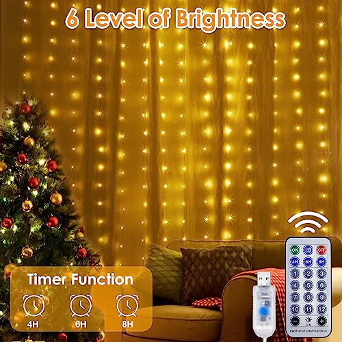 Luce per tende 3 in 1 che cambia colore: Anpro 3M x 3 m x 9,8 ft x 9,84 ft è disponibile in opzioni di colore bianco caldo, multicolore e ambra per un'illuminazione versatile per una varietà di occasioni. 6 livelli di luminosità per un controllo individuale dell'umore.