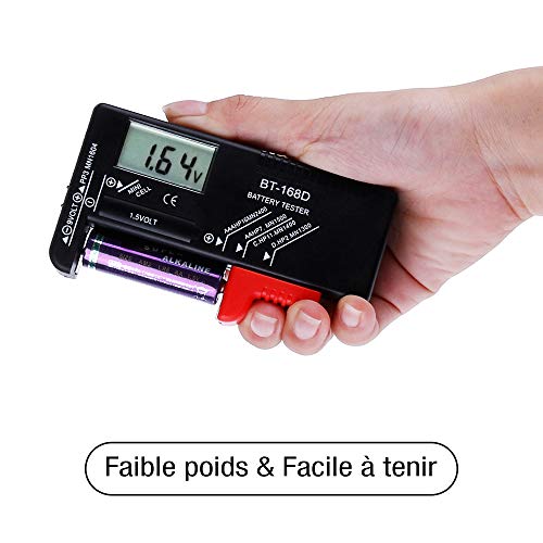 Anpro - Tester di batterie universali AAA AA, 1,5 V 9 V, pulsante tester digitale, display digitale, nessun bisogno di alimentarle a batteria dediata, alimentata da batterie e batteria in test