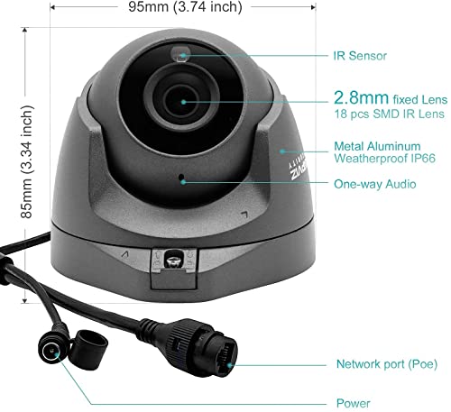 【5MP Visione Notturna IR da 30 Metri & 110° Grandangolare】Questa telecamera IP PoE HD da 5MP supporta un raggio di visione notturna IR a lunga distanza di 20-30 metri e un angolo di visione ultra-ampio di 110°, cattura immagini e video più nitide, ideale per vialetti, corridoi, ecc. Avviso: non è telecamera PTZ;