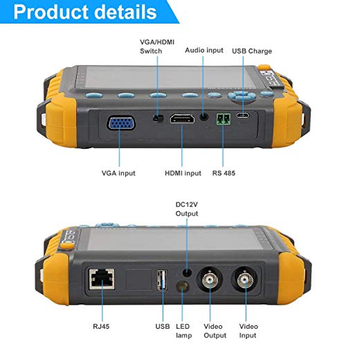 Anpviz Tester CCTV 4 in 1 da 5.0 MP, Tester monitor HD video coassiale AHD/TVI/CVI, Test cavo video analogico/UTP Tester telecamera uscita VGA/HDMI ingresso DC12V