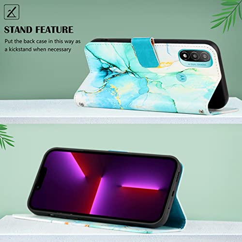Anreixx Custodia a portafoglio Compatibile con Motorola Moto E20 / E30 / E40, Custodia in pelle PU dal design marmoreo con slot per carte di credito, supporto per il calcio e cordoncino