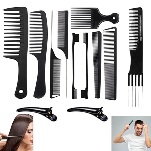 ➰ Set di 12 pettini professionali per acconciature, inclusi pettine afro, pettine per taglio dei capelli e utensili per la messa in piega - Perfetti per uomini, barbieri e parrucchieri, adatti a diverse lunghezze e stili di capelli.