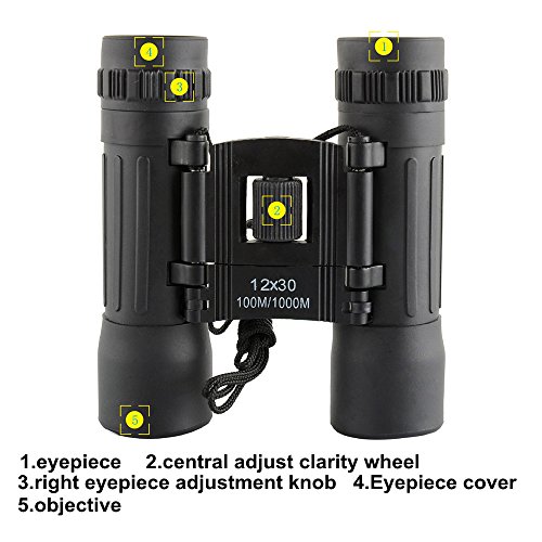 Anself 12x30 96 / 1000m Mini Ottica Sport Binocular Telescope Cannocchiale per la Caccia d'escursione di Campeggio Concerto di Viaggio