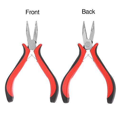 Anself Kit di accessori per extension capelli, set di 3 pezzi con pinza a punta curva, tira ago e 100 anelli in silicone neri da 5 mm