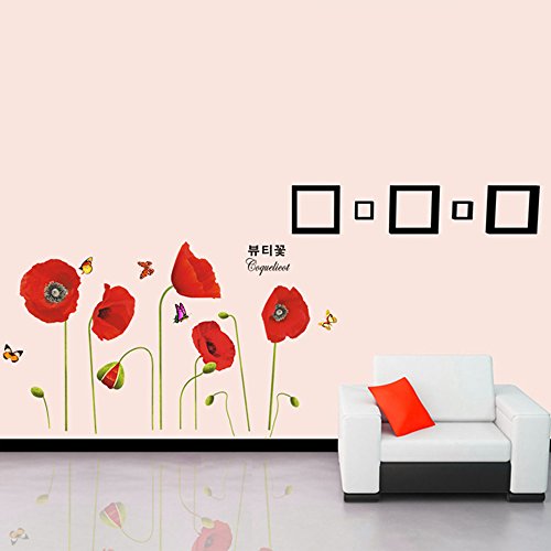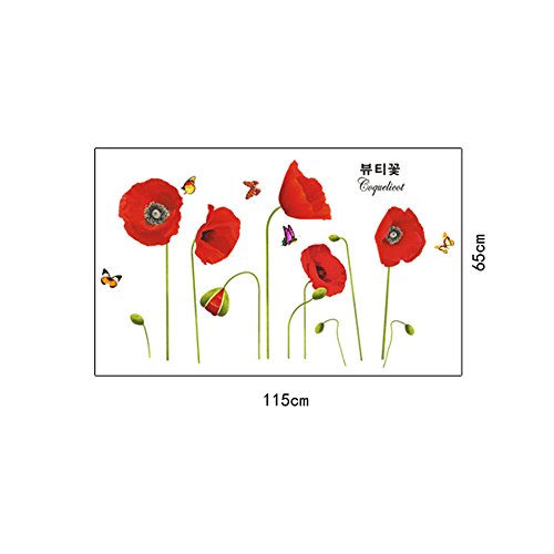 Anself Bright Red Papavero Belle DIY Wallpaper Art Decor Wall Stickers murale camera decalcomania
