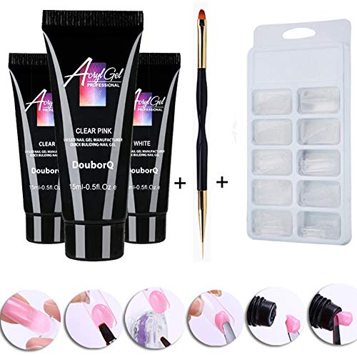 Anself - Kit di estensione in gel per unghie in gel da 15 ml + 100 stampi per unghie + spingitore a doppia punta + pennello per unghie, kit di costruzione rapida in gel per manicure